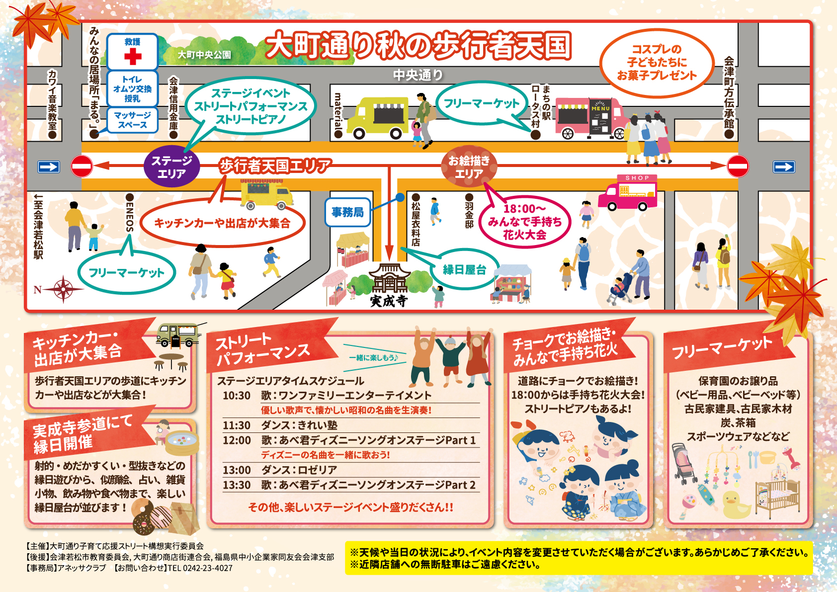 コスプレ大集合 実成寺参道での縁日、大町通り歩道のキッチンカーなどの出店、 演舞披露、ダンス披露、他ステージイベント開催予定です